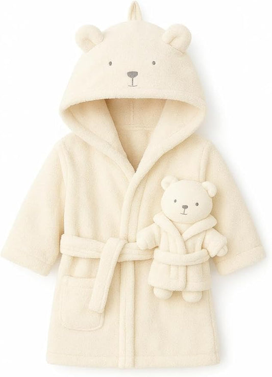 Rock-a-Bye Baby Boutique Unisex Ivory Cream Teddy Bear Plush Hooded Bath Robe with Cuddly Soft Toy – Gift Set for Babies 6–9 Months, Ultra-Soft Newborn Bathrobe & Matching Plush Toy